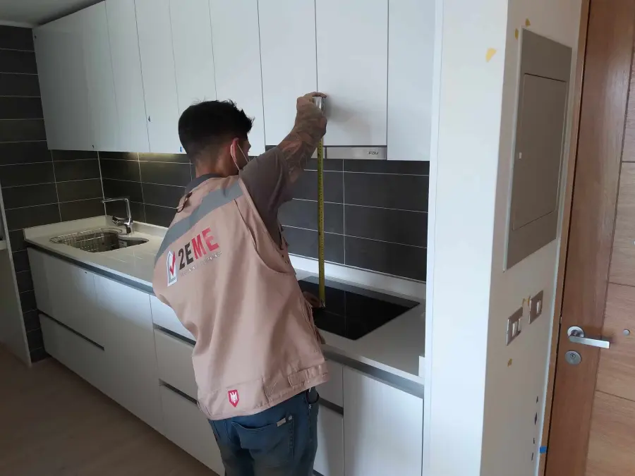Faltan fijaciones en mueble aéreo de cocina. Se debe fijar, ya que, al aplicar peso con platos y utensilios típicos, podrá caer.